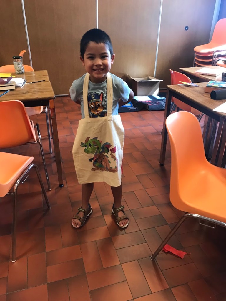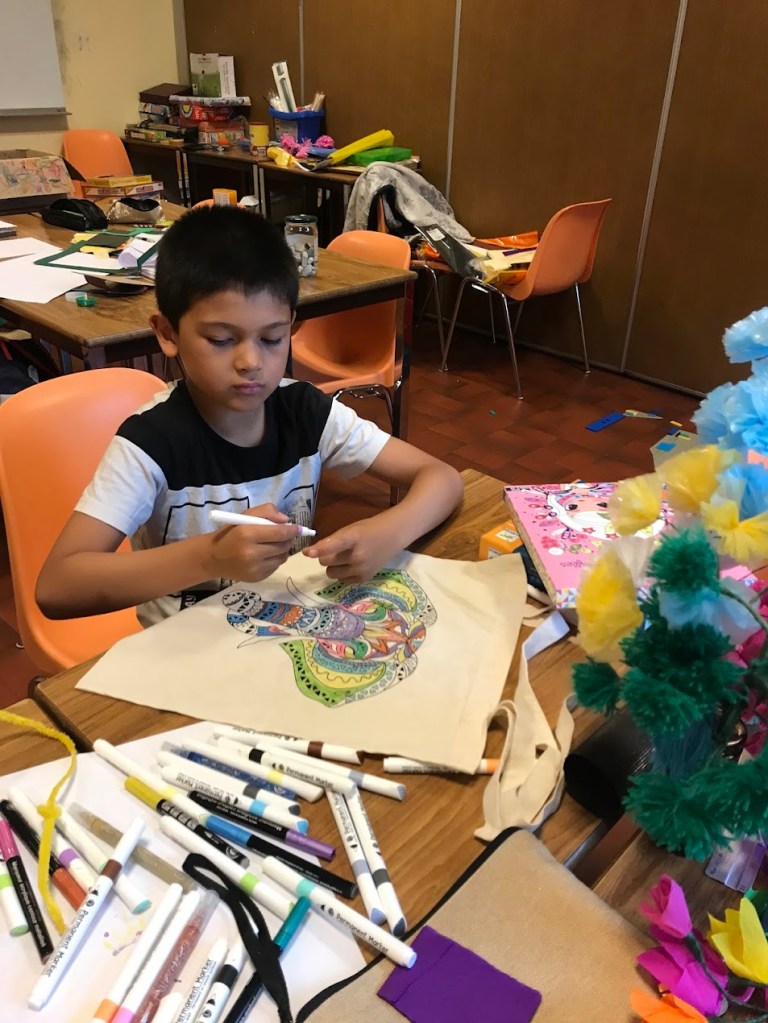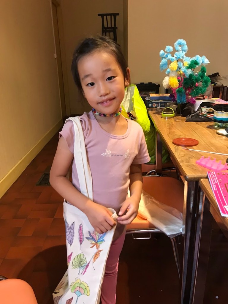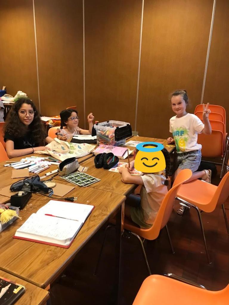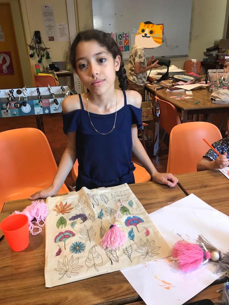 Nous avons sensibilisé les enfants aux problèmes écologiques dans des ateliers centrés sur l’anti-gaspillage: bien refermer les feutres et les peintures, économiser le papier, finir les oeuvres qu’on a commencé, ne pas avoir les yeux plus gros que le ventre au goûter etc.