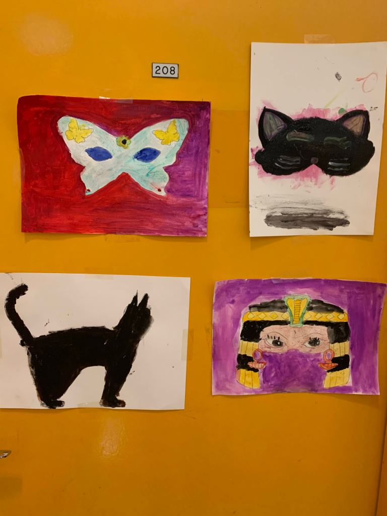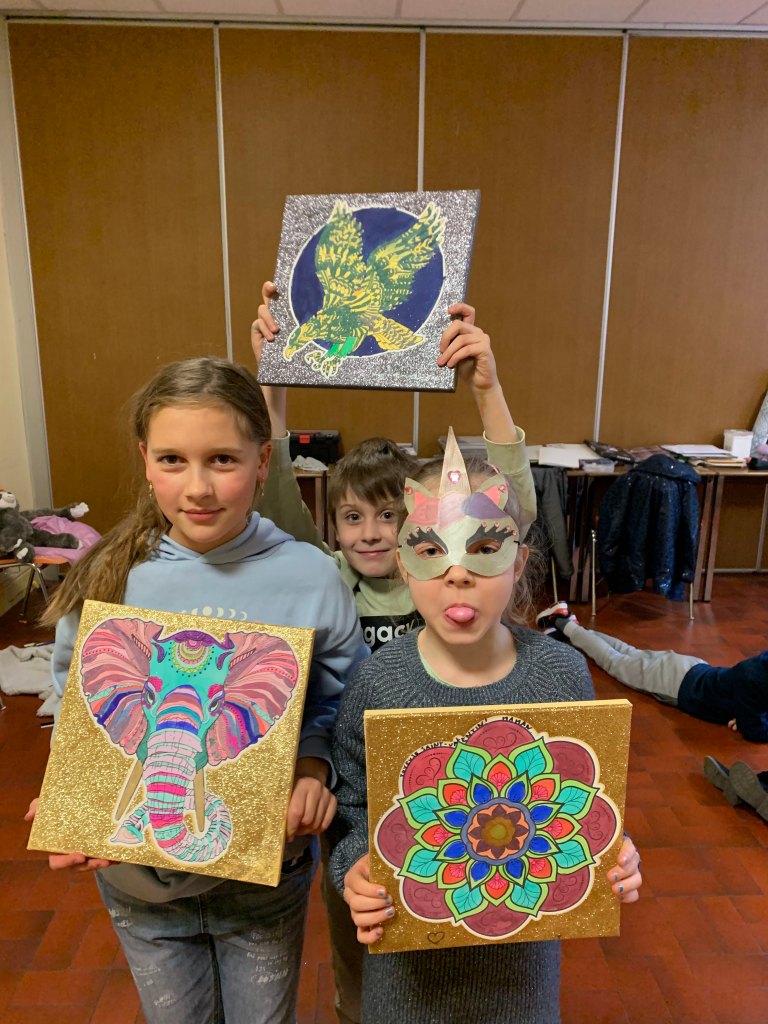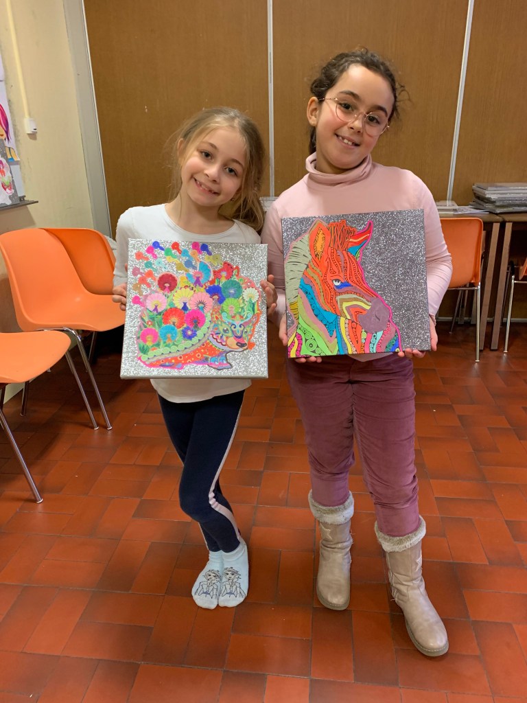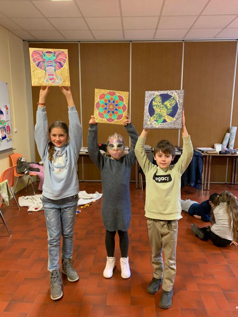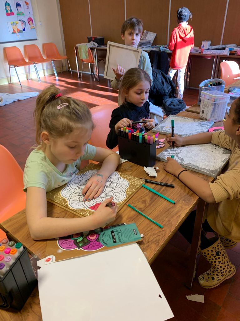 Nous avons sensibilisé les enfants aux problèmes écologiques dans des ateliers centrés sur l’anti-gaspillage: bien refermer les feutres et les peintures, économiser le papier, finir les oeuvres qu’on a commencé, ne pas avoir les yeux plus gros que le ventre au goûter, etc.