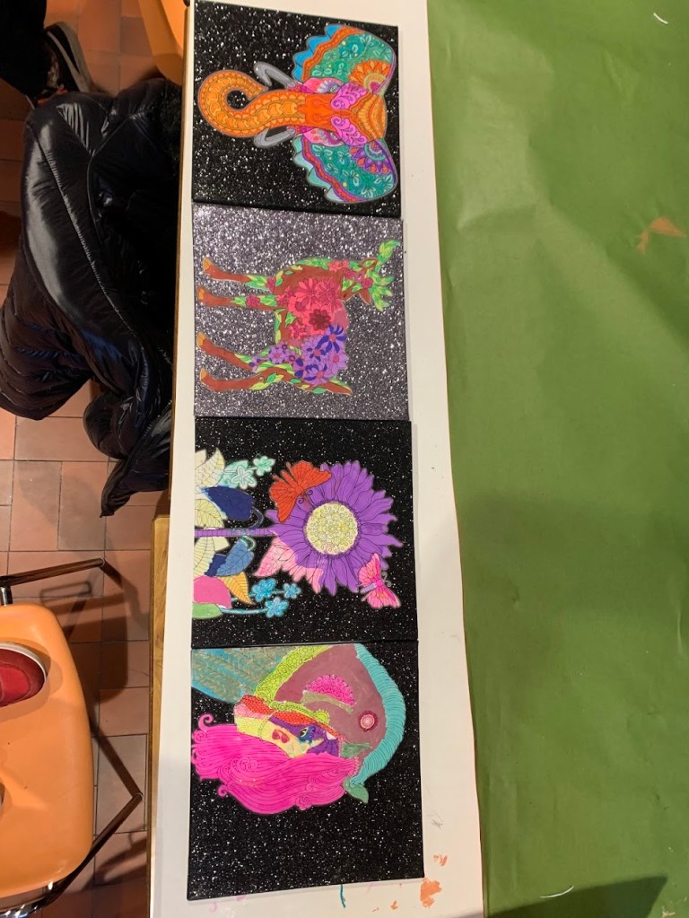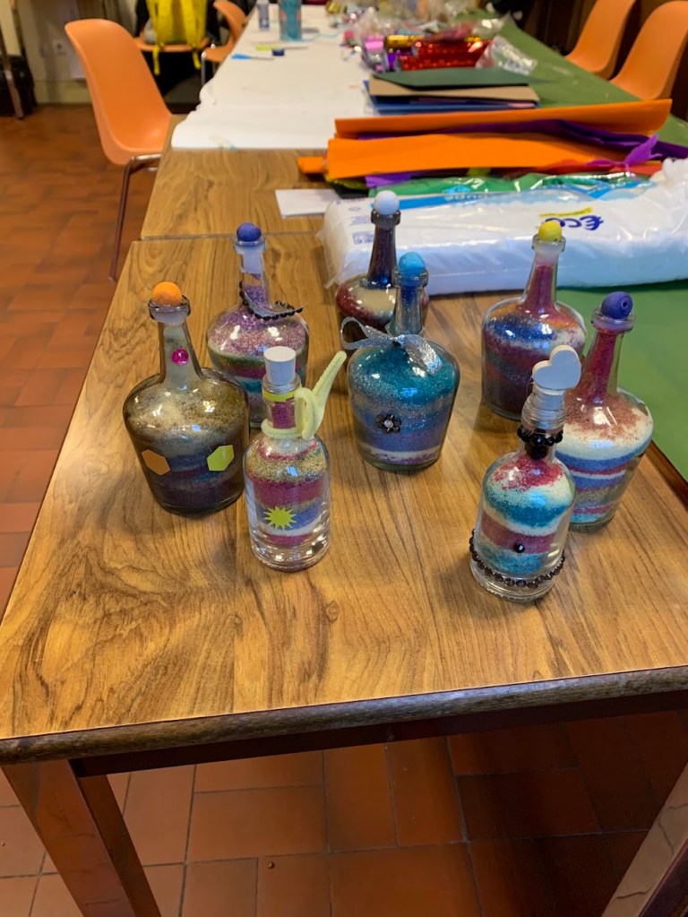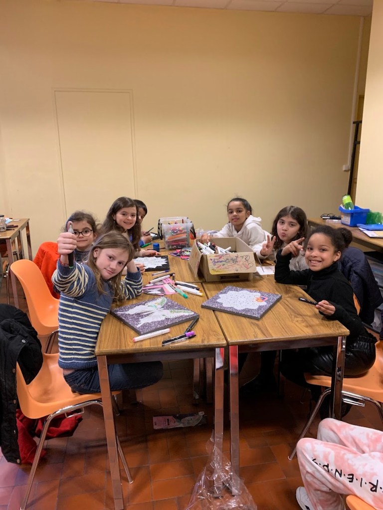 Nous avons sensibilisé les enfants aux problèmes écologiques dans des ateliers centrés sur l’anti-gaspillage: bien refermer les feutres et les peintures, économiser le papier, finir les oeuvres qu’on a commencé, ne pas avoir les yeux plus gros que le ventre au goûter, etc.
