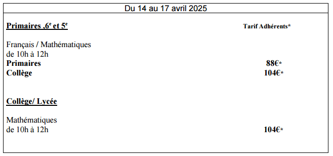 La participation aux stages nécessite une adhésion qui couvre toute la famille pendant toute l’année scolaire pour 50€.