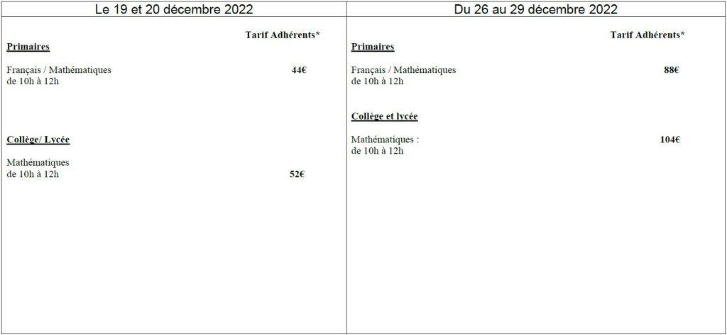 Nous organisons un stage du 19 au 20 décembre 2022 et du 26 au 29 décembre 2022.